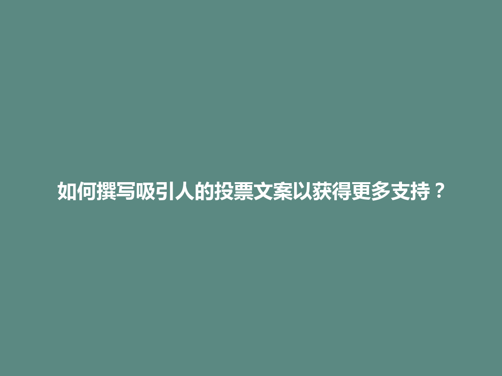 撰写吸引人的投票文案需要清晰的目的、亲切的语言、明确的指引和情感的共鸣。结合这些元素,你的投票文案定能在微信平台上获得更多支持,推动投票活动的成功。